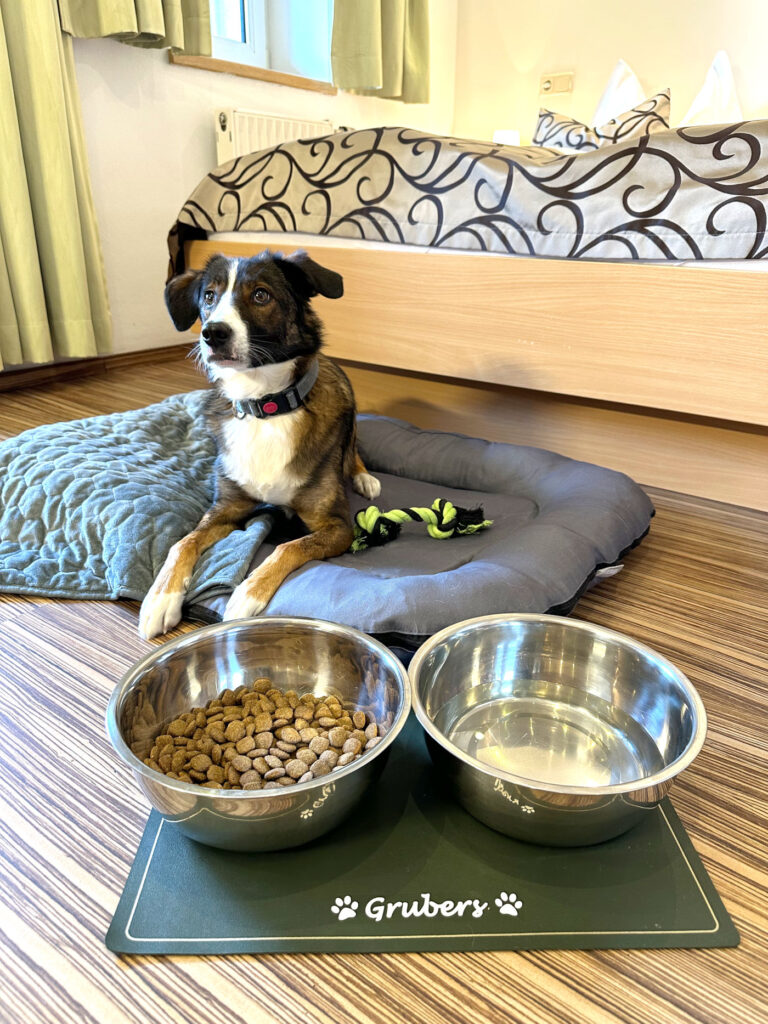 ‘Un cane in albergo? Ma certamente!‘ ci dice la gentile host Gerti Gruber ‘Da noi ogni amico a quattro zampe è più che benvenuto: coperte per cani, ciotole per il cibo e un piccolo regalo vi aspettano all’arrivo. Il vostro amico a quattro zampe può ovviamente accedere allo spazio per la prima colazione e a tutti gli altri locali dell’albergo. Se vorrete, il servizio di dog sitting, gratuito per soggiorni di 4 o più giorni, vi consentirà di godere delle due spa per rilassarvi e riprendervi dalle lunghe passeggiate che potrete fare nei pressi della nostra struttura. ‘